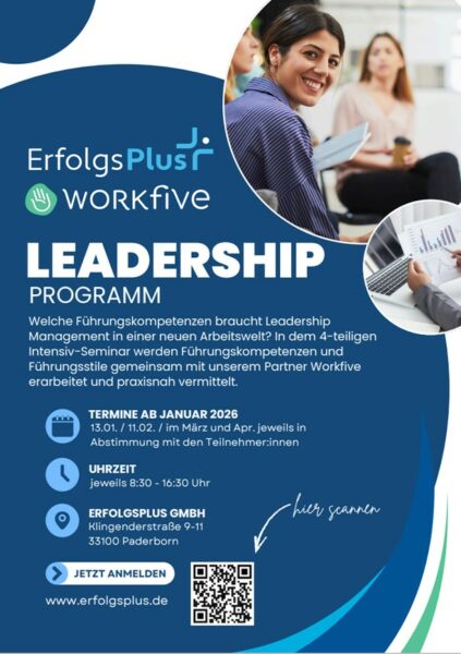 Bei ErfolgsPlus bieten wir Ihnen ein breites Spektrum an Workshops und Seminare, die darauf abzielen, die beruflichen Fähigkeiten und Kenntnisse Ihrer Mitarbeitenden gezielt zu erweitern. Ob im Bereich Führung und Personalentwicklung, Arbeits- und Sozialversicherungsrecht, Arbeitswirtschaft, Personalführung oder Recruiting – unsere Seminare sind darauf ausgelegt, nicht nur theoretisches Wissen zu vermitteln, sondern dieses auch direkt im Arbeitsalltag anzuwenden. Dadurch unterstützen wir Sie dabei, die strategischen Ziele Ihres Unternehmens nachhaltig zu erreichen.